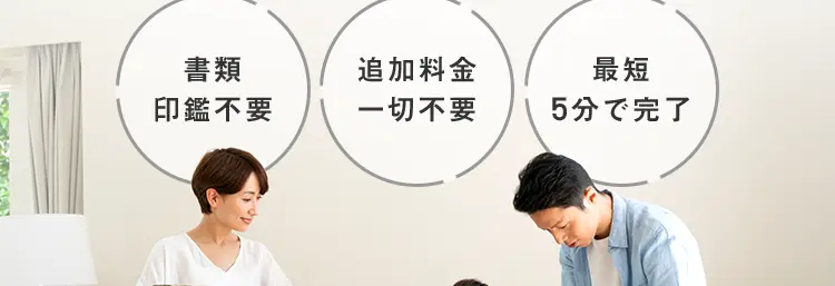 書類/印鑑の準備不要で、 すぐの手続きが可能